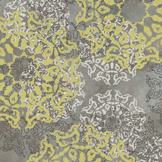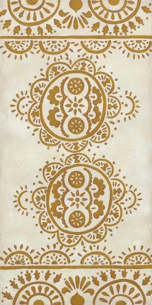Ochre Embroidery II White Modern Wood Framed Art Print with Double Matting by Zarris, Chariklia