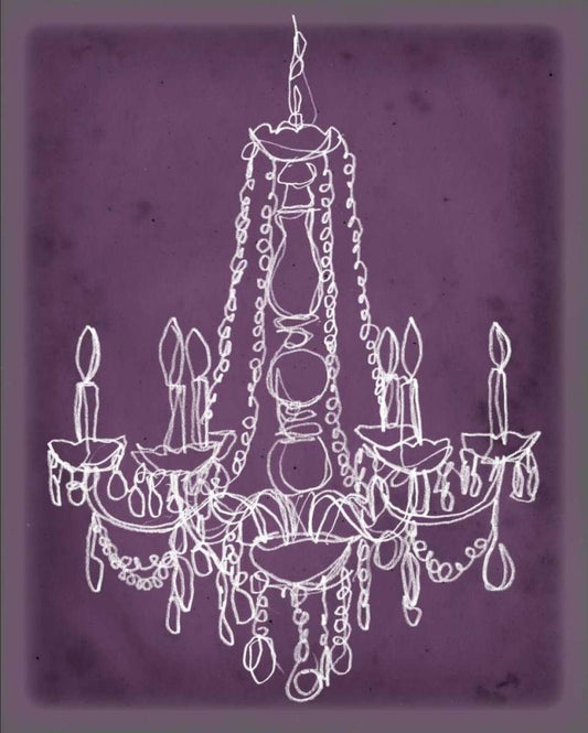 Plum Chandelier Sketch I White Modern Wood Framed Art Print with Double Matting by Harper