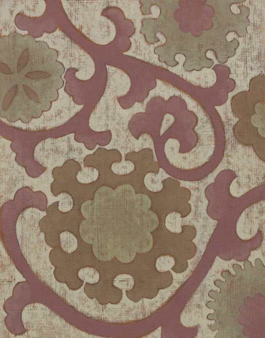 Plum Suzani I White Modern Wood Framed Art Print with Double Matting by Zarris, Chariklia