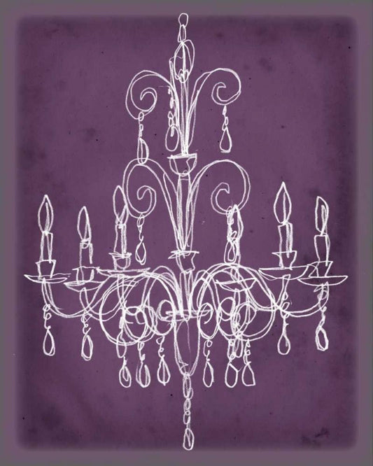 Plum Chandelier Sketch II White Modern Wood Framed Art Print with Double Matting by Harper