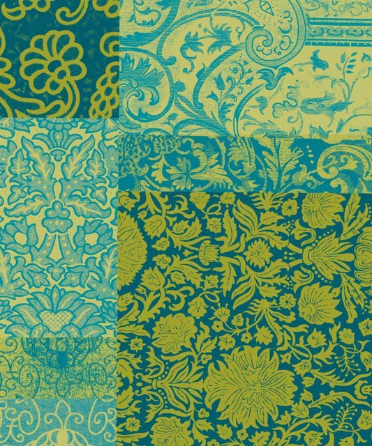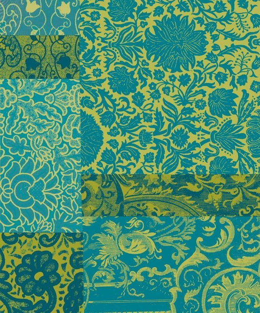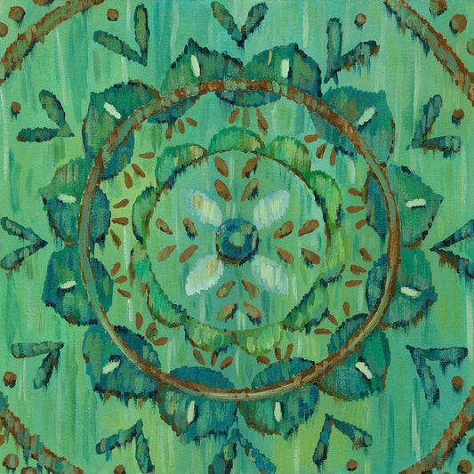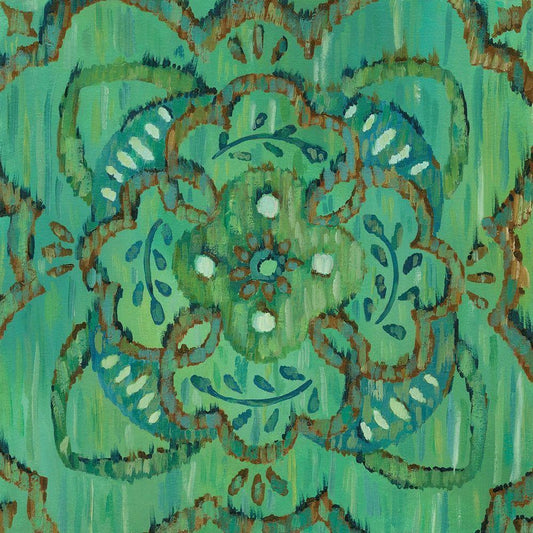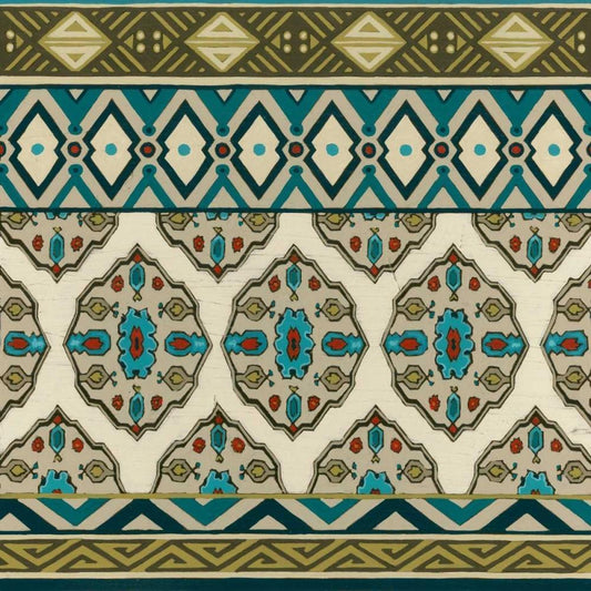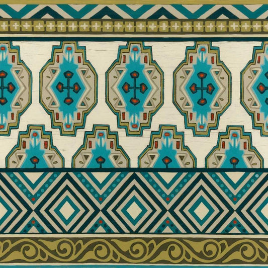 Turquoise Textile II White Modern Wood Framed Art Print with Double Matting by Vess, June Erica