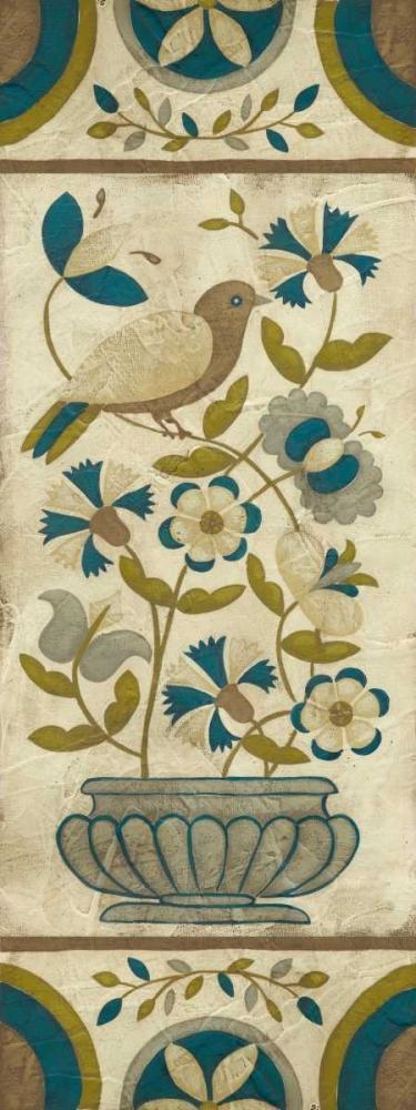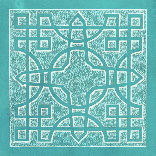 Turquoise Textile I White Modern Wood Framed Art Print with Double Matting by Vess, June Erica
