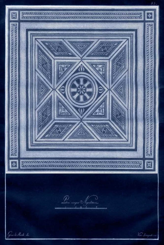 Indigo Tile V White Modern Wood Framed Art Print with Double Matting by Vision Studio