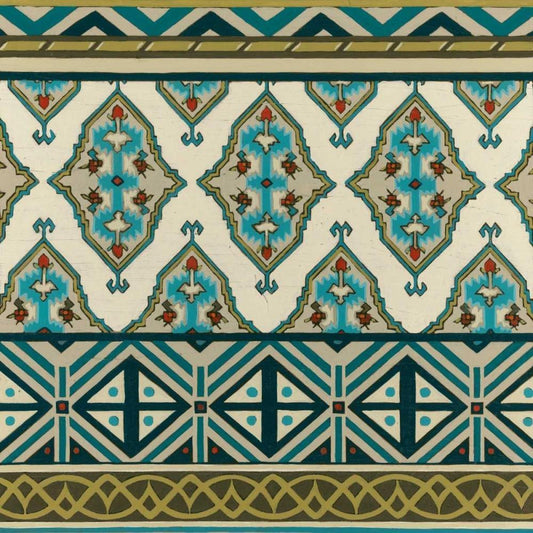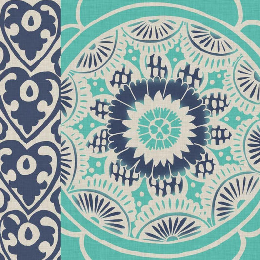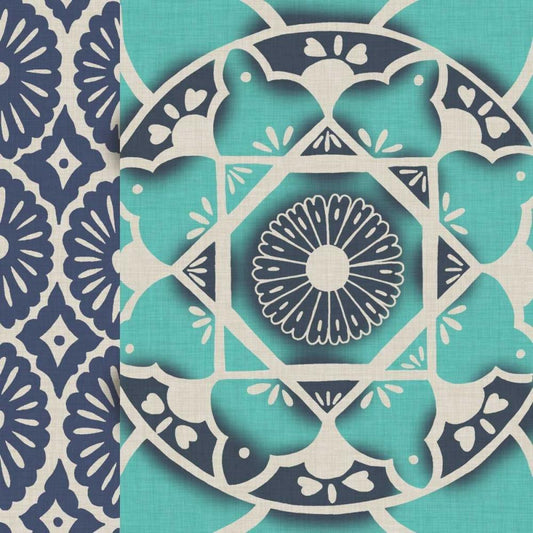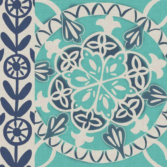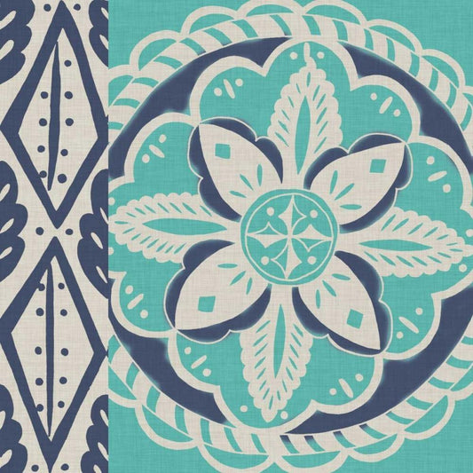 Turquoise Textile III White Modern Wood Framed Art Print with Double Matting by Vess, June Erica