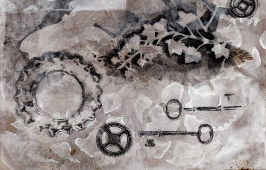 Filigree and Key II White Modern Wood Framed Art Print with Double Matting by Goldberger, Jennifer