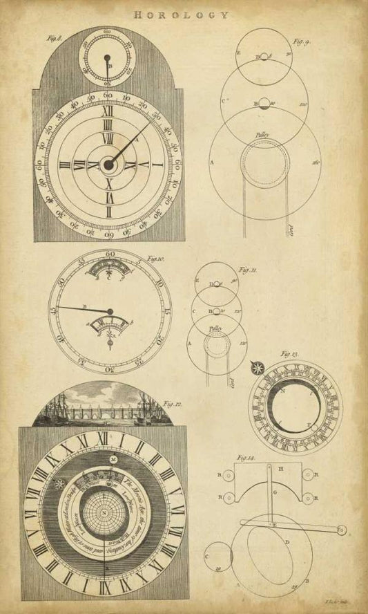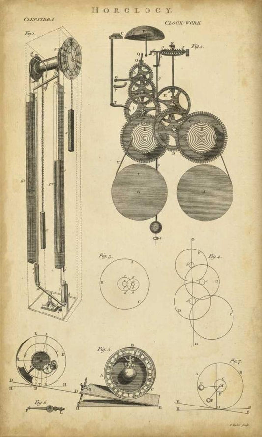 Clockworks I White Modern Wood Framed Art Print with Double Matting by Chambers