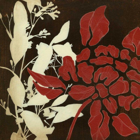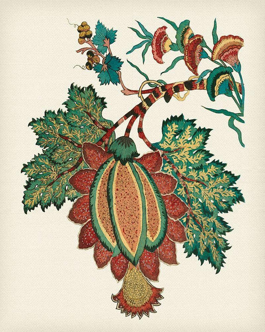 Jacobean Floral II White Modern Wood Framed Art Print with Double Matting by Vision Studio