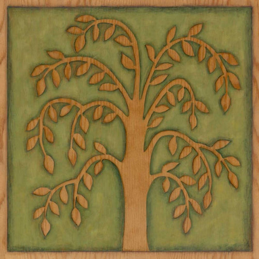 Arbor Woodcut I White Modern Wood Framed Art Print with Double Matting by Meagher, Megan