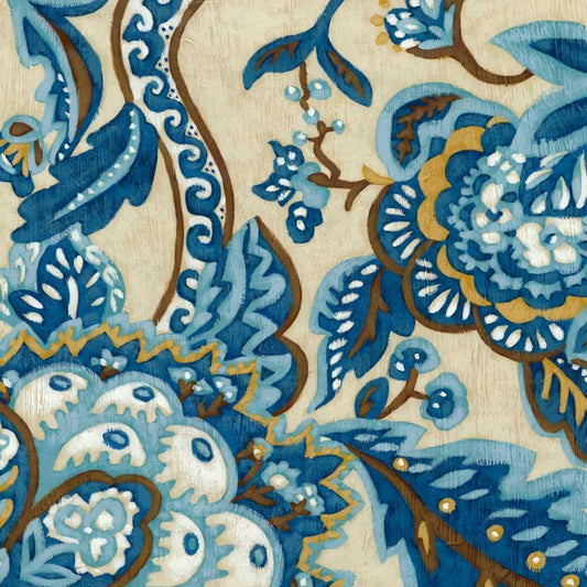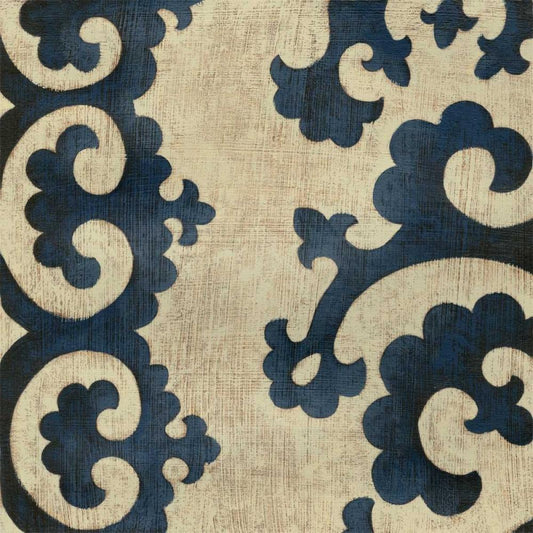 Indigo Tapestry I White Modern Wood Framed Art Print with Double Matting by Zarris, Chariklia