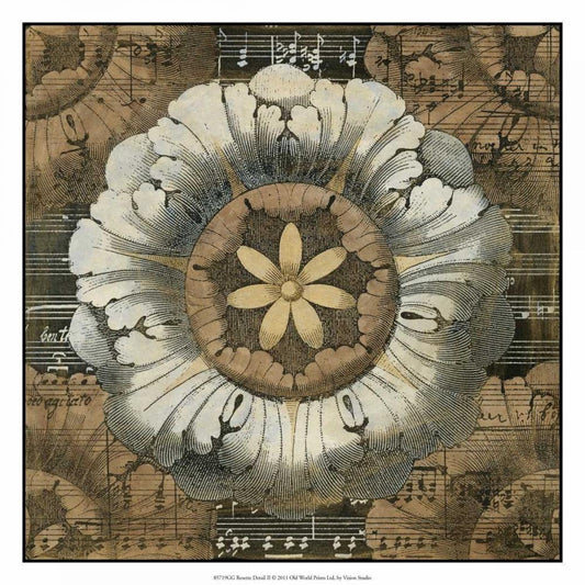 Rosette Detail II White Modern Wood Framed Art Print with Double Matting by Vision Studio