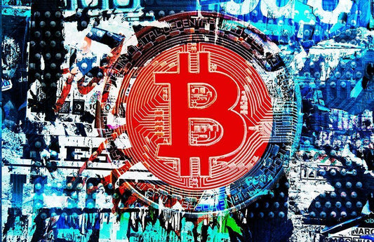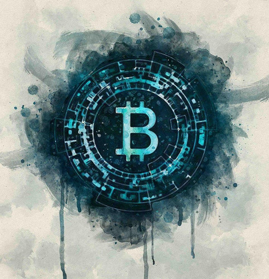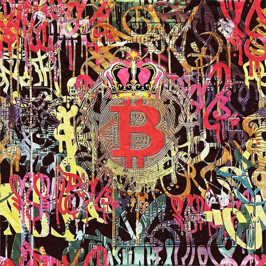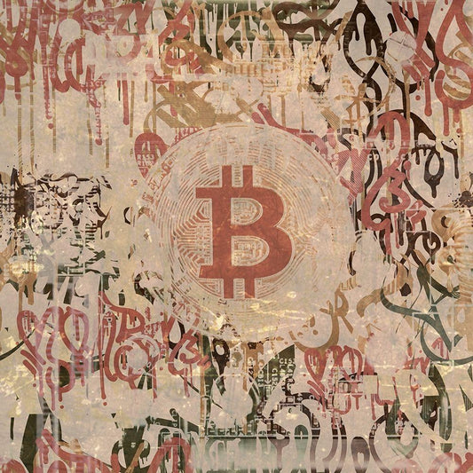 Crypto Currency Bitcoin Graffiti IV White Modern Wood Framed Art Print with Double Matting by Orlov, Irena