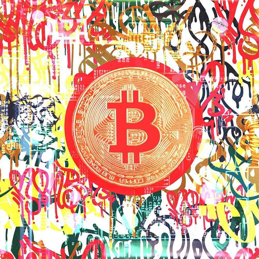 Bitcoin Graffiti Art IV White Modern Wood Framed Art Print with Double Matting by Orlov, Irena