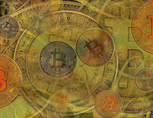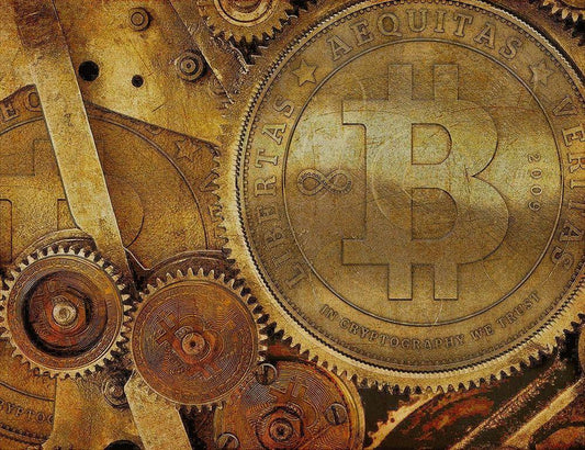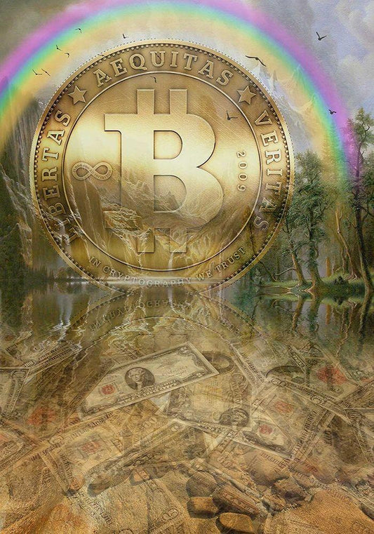 Bitcoin Era I White Modern Wood Framed Art Print with Double Matting by Surma, Agata