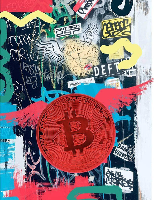 Bitcoin Street Art I White Modern Wood Framed Art Print with Double Matting by Orlov, Irena
