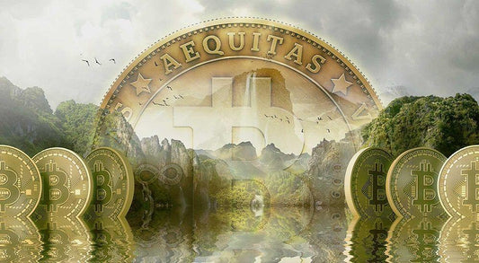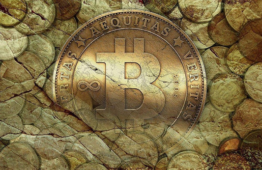 Bitcoin New Age I White Modern Wood Framed Art Print with Double Matting by Hunziker, Steve
