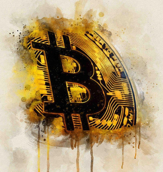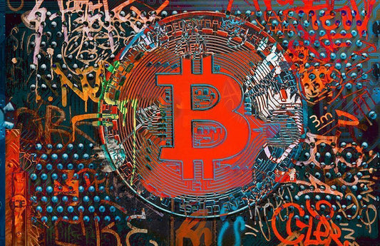 Crypto Currency Bitcoin Graffiti III White Modern Wood Framed Art Print with Double Matting by Orlov, Irena