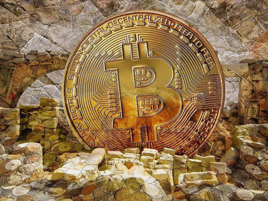 Bitcoin Coin Art I White Modern Wood Framed Art Print with Double Matting by Orlov, Irena