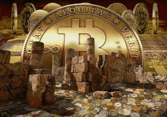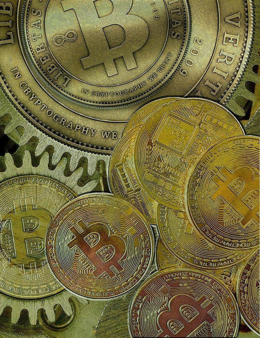 Bitcoin Era II White Modern Wood Framed Art Print with Double Matting by Surma, Agata