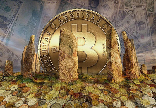 Bitcoin New Age I White Modern Wood Framed Art Print with Double Matting by Hunziker, Steve