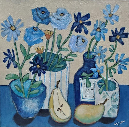 Kobe Blues White Modern Wood Framed Art Print with Double Matting by Wojahn, Holly