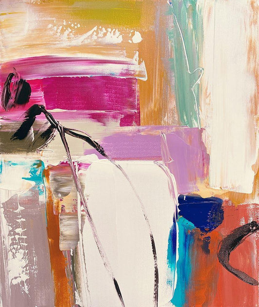 Joyful Modernist Abstraction VIII White Modern Wood Framed Art Print with Double Matting by Orlov, Irena