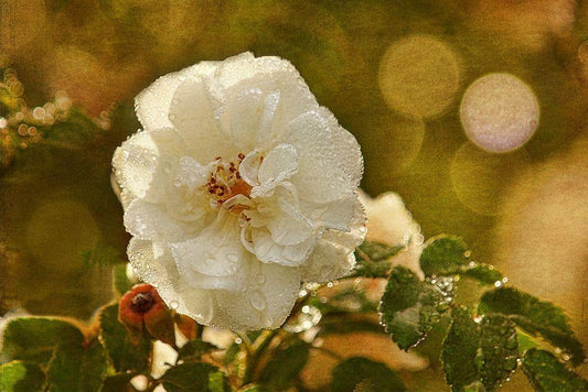 Adorned in Raindrops White Modern Wood Framed Art Print with Double Matting by Robertson, Leda