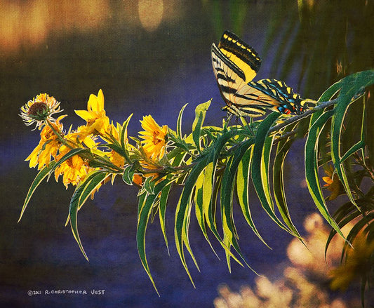 Yellow Flowers Butterfly White Modern Wood Framed Art Print with Double Matting by Vest, Christopher