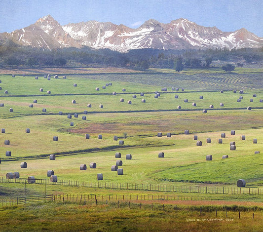 Chery Creek Haybales White Modern Wood Framed Art Print with Double Matting by Vest, Christopher