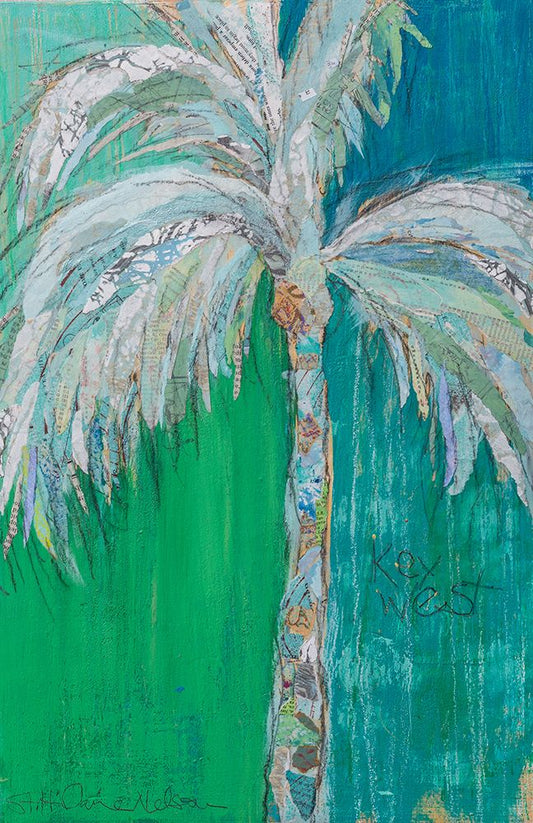 Palm in Teal White Modern Wood Framed Art Print with Double Matting by St Hilaire, Elizabeth