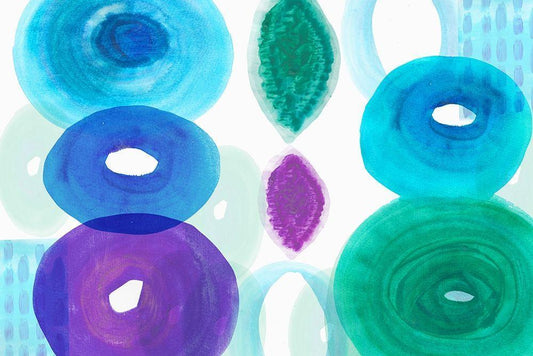 Mint Discs II White Modern Wood Framed Art Print with Double Matting by Kouta, Flora