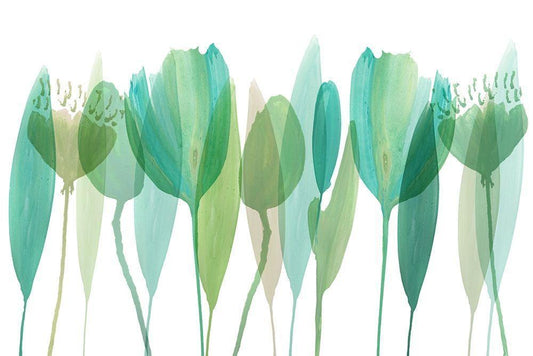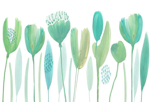 Serene Greens I White Modern Wood Framed Art Print with Double Matting by Kouta, Flora