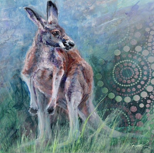 Red Kangaroo White Modern Wood Framed Art Print with Double Matting by Campbell, Robert