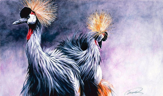 Crowned Cranes White Modern Wood Framed Art Print with Double Matting by Campbell, Robert