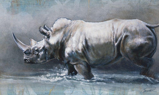 Rhino Crossing White Modern Wood Framed Art Print with Double Matting by Campbell, Robert