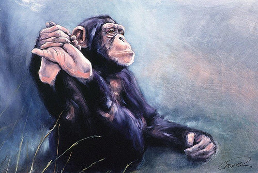 Cest la Vie Chimp White Modern Wood Framed Art Print with Double Matting by Campbell, Robert
