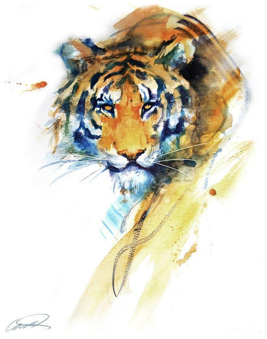 Tiger Strokes White Modern Wood Framed Art Print with Double Matting by Campbell, Robert