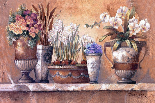 Antique Blossoms White Modern Wood Framed Art Print with Double Matting by Lee, James