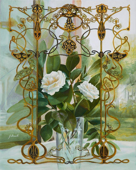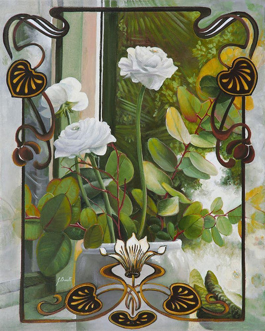 Rose Bianche Liberty White Modern Wood Framed Art Print with Double Matting by Borelli, Guido