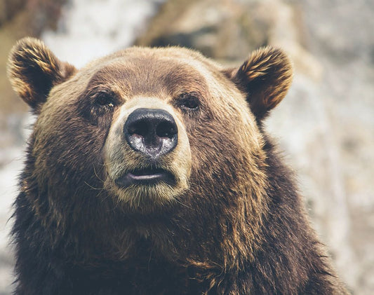 Bear Stare I White Modern Wood Framed Art Print with Double Matting by Smith, Karen