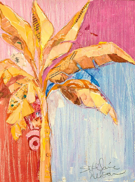 Pink Banana White Modern Wood Framed Art Print with Double Matting by St Hilaire, Elizabeth