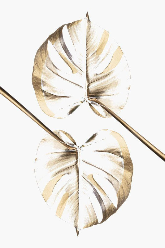 Monstera Gold 10 White Modern Wood Framed Art Print with Double Matting by Artographie Studio