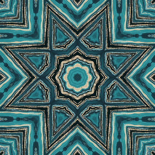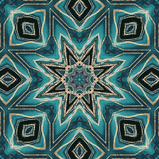 Gold Teal Tile IV White Modern Wood Framed Art Print with Double Matting by Haase, Andrea