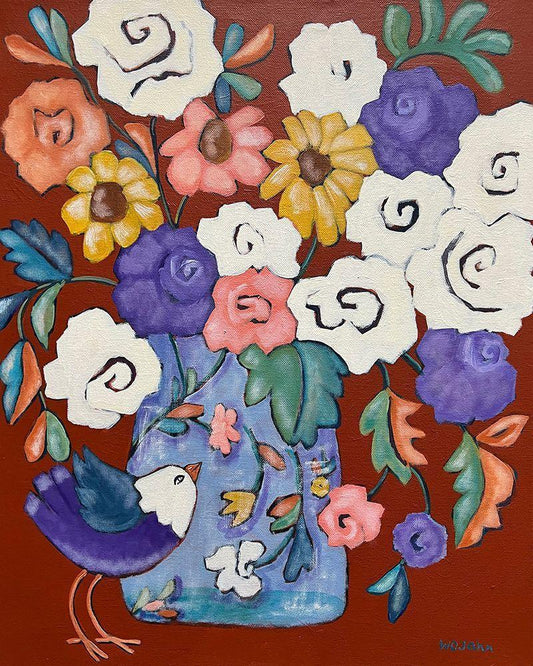 Happy Bluebird #1 White Modern Wood Framed Art Print with Double Matting by St Hilaire, Elizabeth