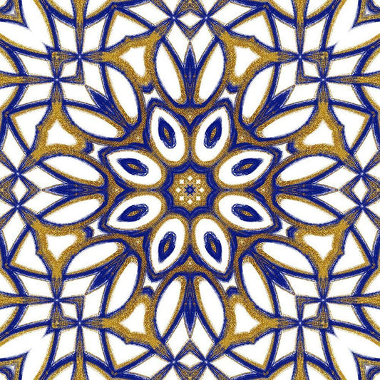 Gold Blue Vintage Tile IV White Modern Wood Framed Art Print with Double Matting by Haase, Andrea