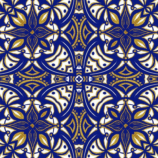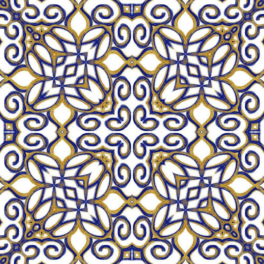 Gold Blue Vintage Tile I White Modern Wood Framed Art Print with Double Matting by Haase, Andrea