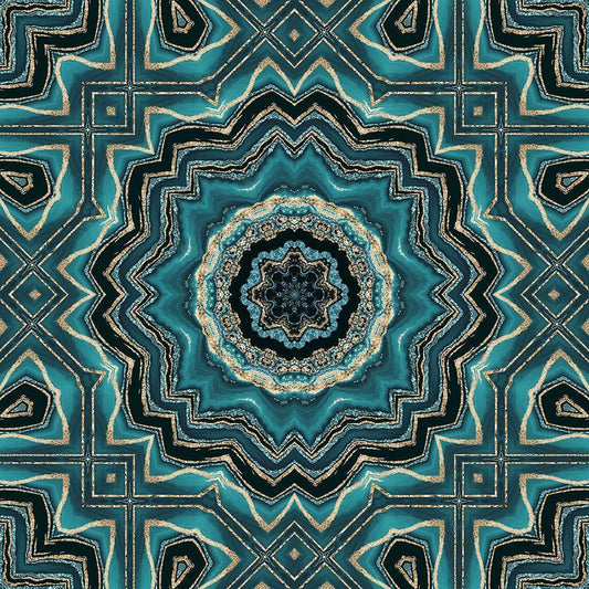 Gold Teal Tile III White Modern Wood Framed Art Print with Double Matting by Haase, Andrea