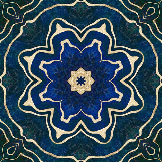 Gold Blue Vintage Tile II White Modern Wood Framed Art Print with Double Matting by Haase, Andrea