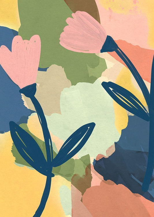 Afternoon Blooms White Modern Wood Framed Art Print with Double Matting by Evalia Designs