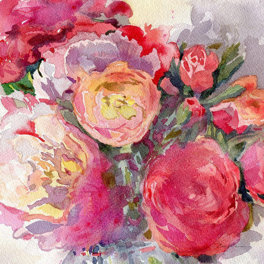 Bluish Hydrangea Loose White Modern Wood Framed Art Print with Double Matting by Evalia Designs