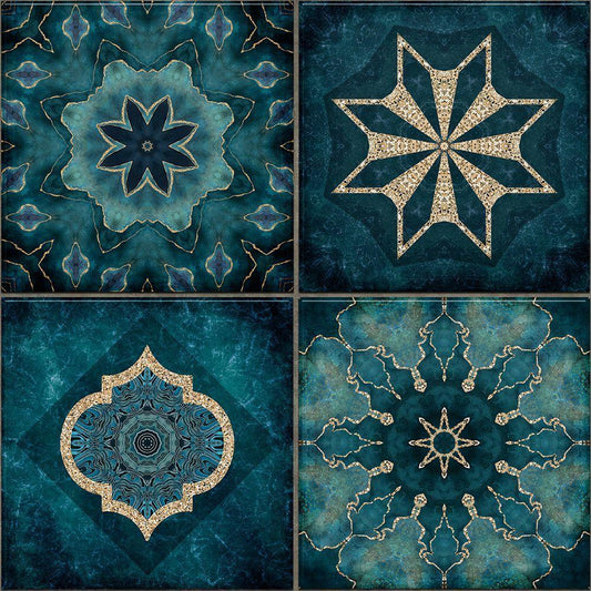 Faded Luxury Teal Tiles White Modern Wood Framed Art Print with Double Matting by Haase, Andrea